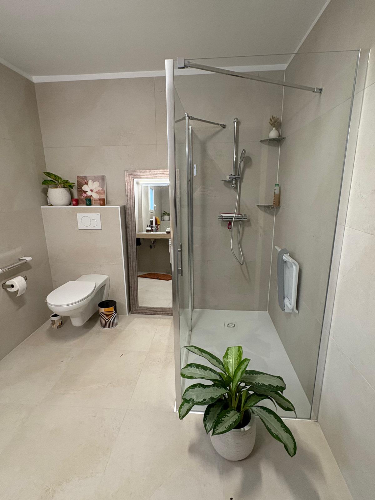 Une rénovation pensée pour le quotidien : confort, sécurité et esthétisme au service de l'usage — rénovation de salle d'eau avec accès PMR à Narbonne réalisée par Géo'therm.
